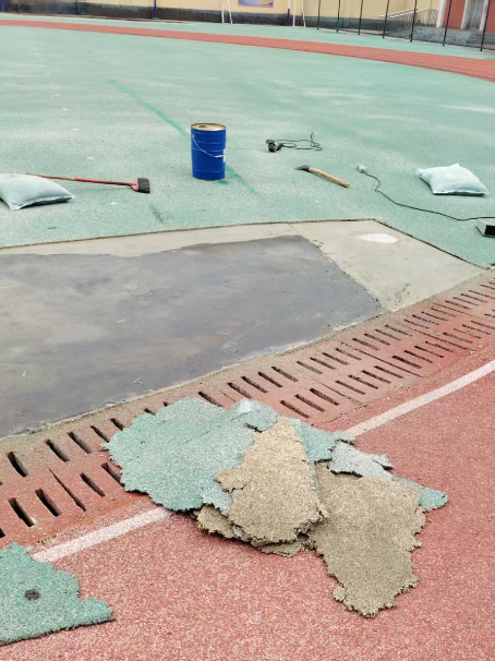 球场翻新维修补聚焦 “精准修复局部病害”,避免大面积返工浪费。施工前先通过全面检测锁定问题:基础层重点排查裂缝(细微缝 / 宽缝)、起砂空鼓、沉陷积水,面层针对性检查脱层、粉化、露底等问题;修补时遵循 “先基础后表层” 原则,基础层按病害类型精准处理 —— 细微裂缝灌注密封胶 + 贴抗裂带加固,起砂空鼓铲除破损层后涂刷界面剂 + 砂浆找平,积水区域重新找坡并疏通排水系统;面层则按材质专属修复,硅 PU 破损处分层摊铺弹性层与耐磨层,丙烯酸起皮区域补涂底涂 + 面漆,硬地起砂可涂刷密封固化剂提升硬度,确保修补后与原场地无缝衔接。